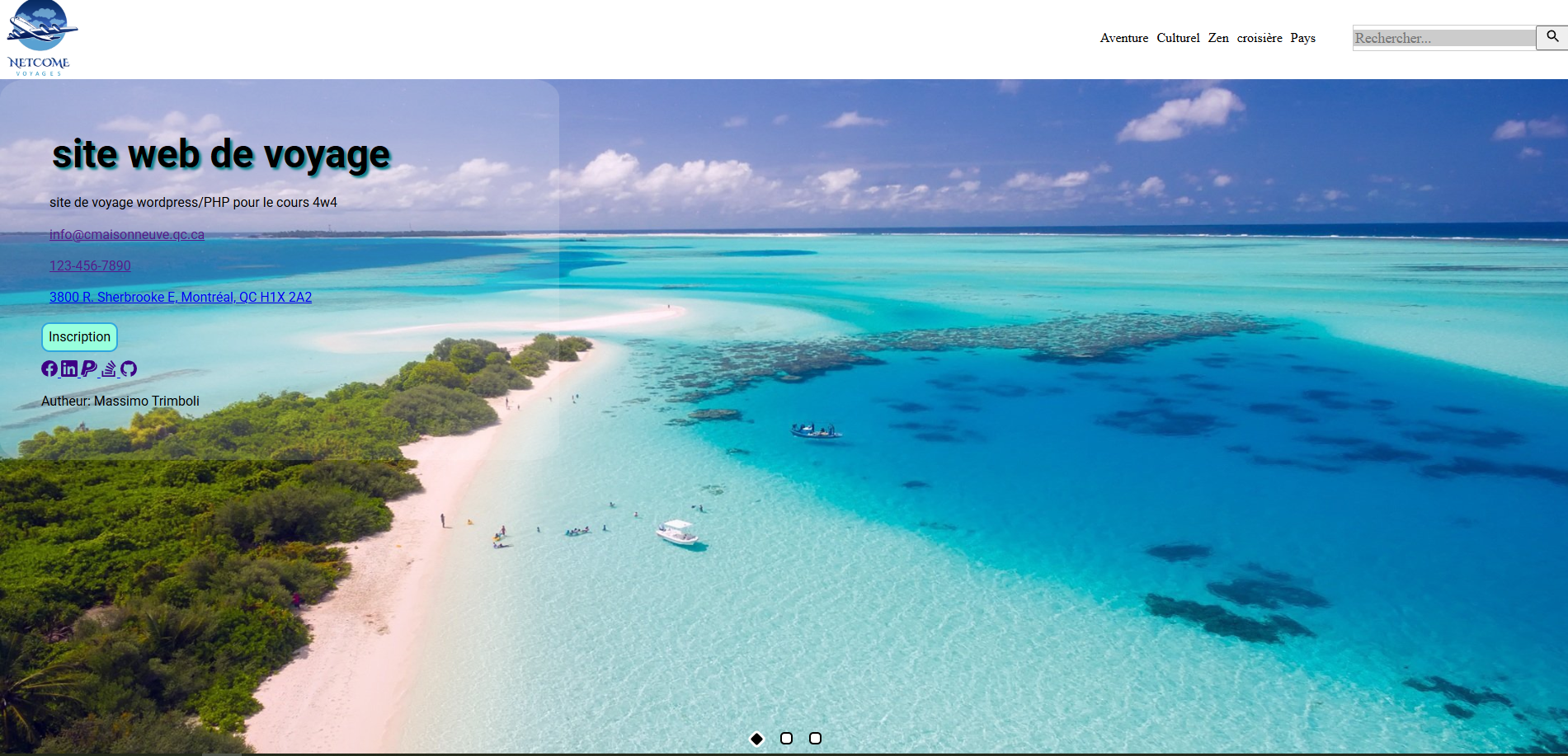 Site de voyage fait dans le cadre du cours 4W4-MA Conception d'interfaces, utilisant les technologies PHP et WordPress et